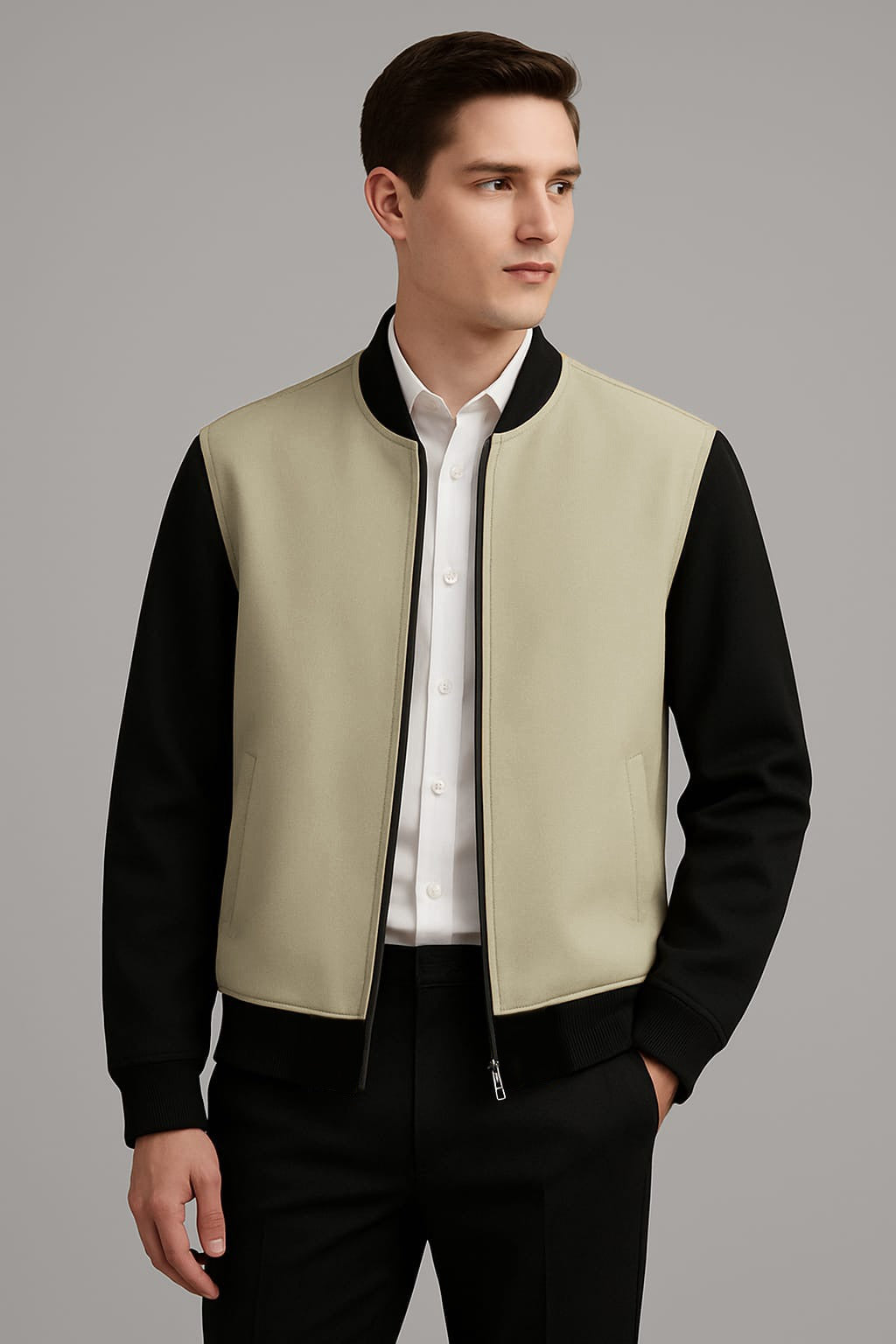 Designed with a sleek zipper front, ribbed cuffs, and a minimalist silhouette, it adds a refined yet edgy vibe — perfect for casual outings or night events.