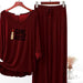 Maroon Printed V-Neck Palazzo Lounge Wear For Women PJ Set